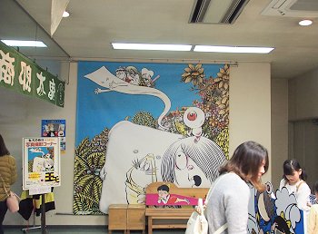 2階のエスカレーター横に暖簾のかかったショップがあり、入るとすぐに、ねずみ男大明神の鳥居が!