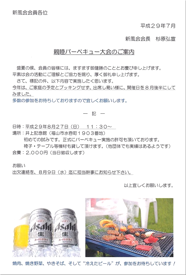| 2017/08/27(日) 新風会「親睦バーベキュー大会」 |