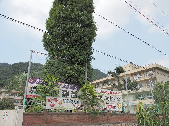 校庭を囲みますフェンスには、『ガンバ大阪入団おめでとう』『ガイナーレ鳥取入団おめでとう』の横断幕が(^_^)v