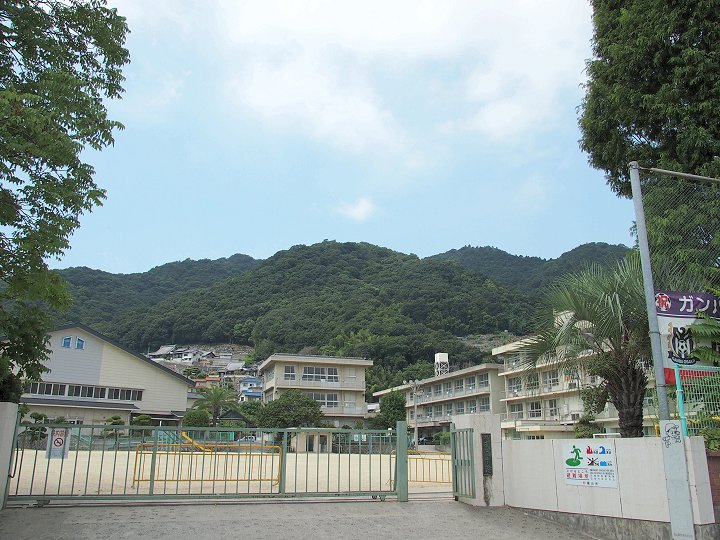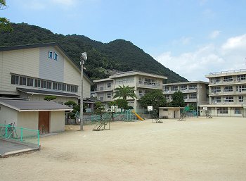 夏休み中ですから、静まりかえった水呑小学校校庭を横目に井上記念館に到着です。