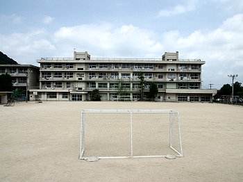 水呑小学校正門前にヤッて来ますと、正門は閉まり閑散とした校庭。
