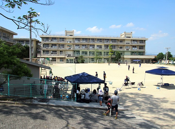 また、往路をそのまま我が家にと向かいますけど、水呑小学校グランドから賑やかな声。