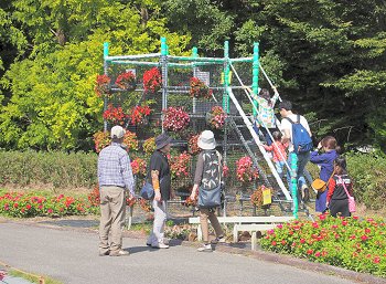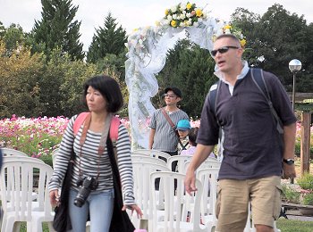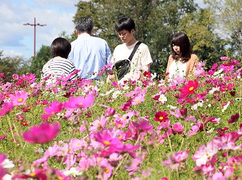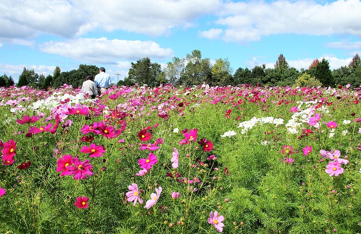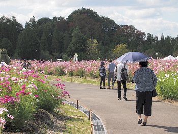 「つどい橋」を通り過ぎ、コスモスの咲き誇ります「花の広場」までヤッて来ますと、さすがに大勢の方々が(^.-)☆