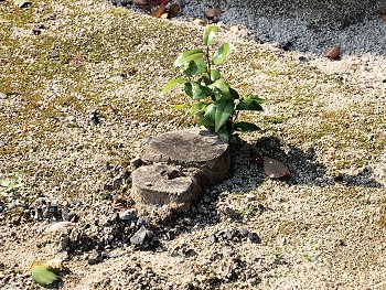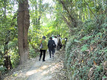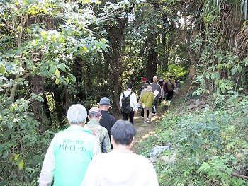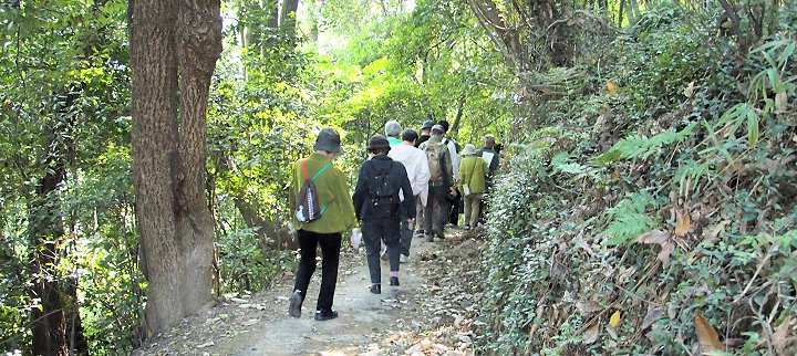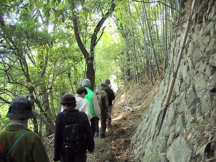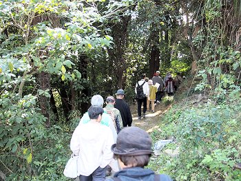 三体尊像に手を合わせました後で、境内を少し北側に移動。この薮の向こうには、日像上人が修行された滝が存在です。