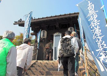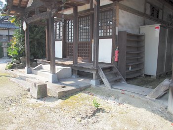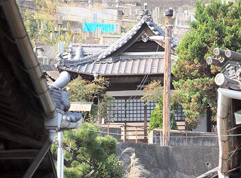 次は善住寺にと向かいますが、境内に存在します鐘楼脇から山側を見上げますと、鐘楼脇の石段を上がったところに「帝釋天王堂」が存在です。