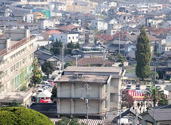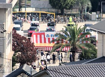 善住寺境内からは、水呑小学校の校庭が…「ふれあい文化祭」の賑やかな様子が伺えます(^_^)v