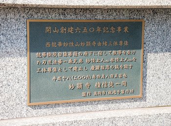 妙顕寺開山650年記念事業として西龍華妙性山妙顕寺三体尊像として建立された尊像です。