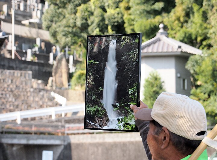 妙性滝は水呑町の中央部を流れる平木川の上流にある。落差は9m、普段の水量は少ないが、雨が続くと写真のように豪快な落水を見る事が出来る。