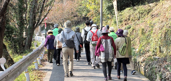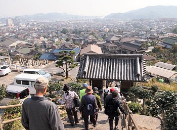 八幡神社が近付いて来まして参道の石段に眼を向けますと、1組のご家族連れが下りて来ておられます。