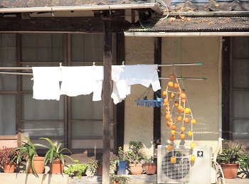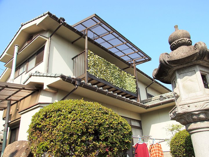「セイゾウボウ川」から八幡さんへの古道に戻ろうとしました際に眼に入りましたのが、民家のベランダのフェンスでした。