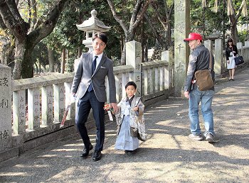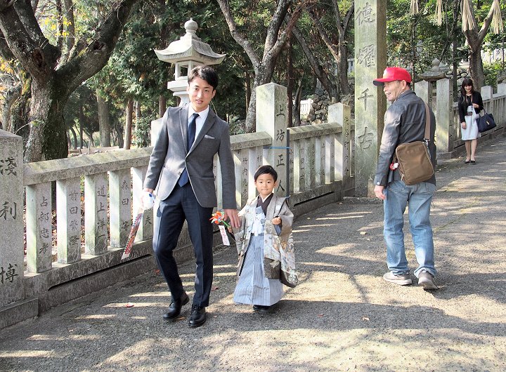 八幡神社本殿にと向かっておりますと、また七五三詣りを終えられましたご家族が下りて来られます(^.-)☆