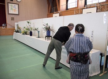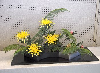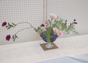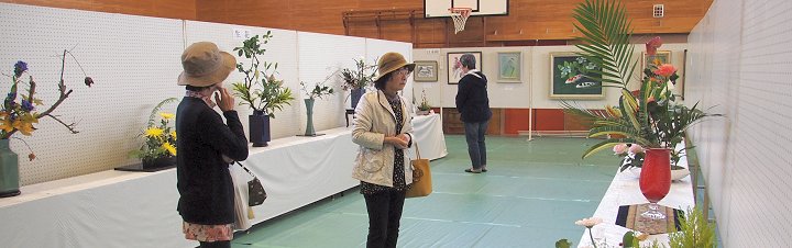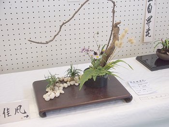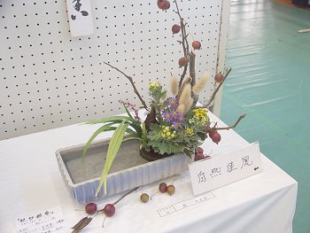 それに「体育館の作品展を見てた…」と返しますと、「私の作品も出品していたけど分かった?」に、一瞬「んっ!?」のGONsanで、「そんなモン、気付かん。出品者でなく作品を楽しんでいたから…」とは言ったものの、多分、撮ってないだろうなぁ〜と想いながらも画像を確認してみますと、いゃいゃ、本当に生け花は3枚しか撮っていませんのに、偶然にもその3枚の中に嫁さんの作品が。嫁さんの作品とは気付きませんで、ただイィなぁ〜と思ったので撮りましたのですが…