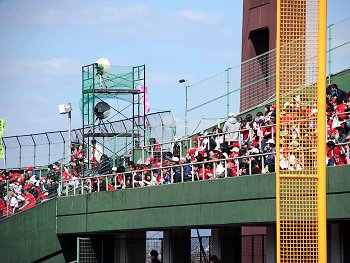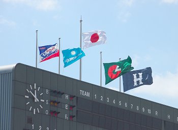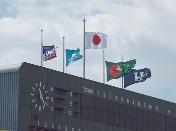 何度かスコアボード上のフラッグに眼を向けましたが、依然として相変わらずセンターからホームベース方向に向け強風が続いております。