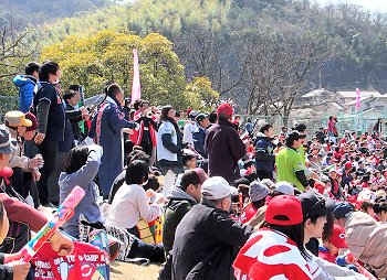 幸いに暖かそうな晴天で、絶好の野球日和の福山市内。