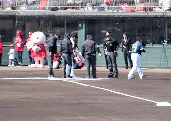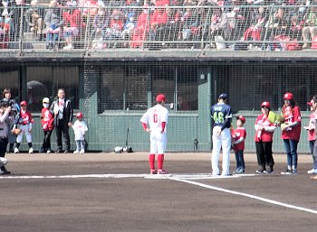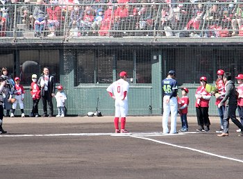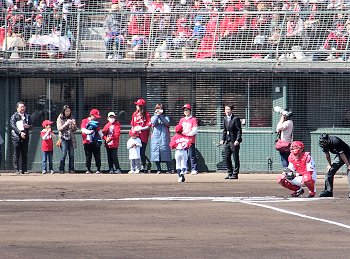 いよいよ試合開始が迫りましたけど、その前に始球式のセレモニー。