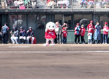 今回の始球式は、水呑小学校3年の生徒さん。