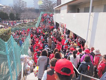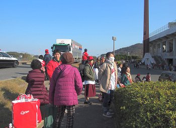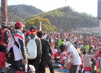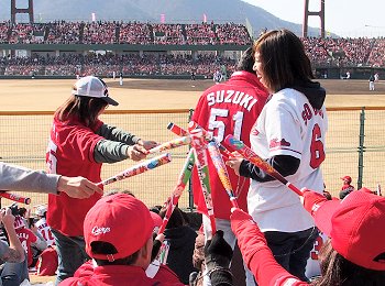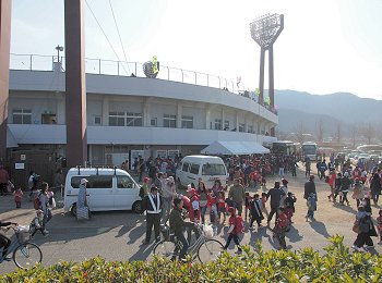 試合が終わりますと、いつものように土手からカープの選手をお見送りです(^.-)☆