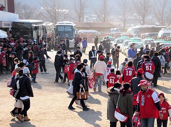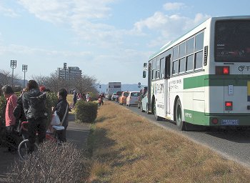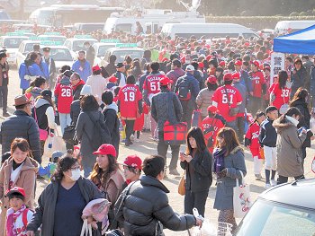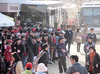 昨年は、バスの運転士sanのスグ後ろの席に黒田選手が陣取っておりましたけど、今回はバス車内があまり見えませんでしたネ。