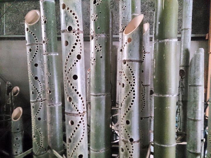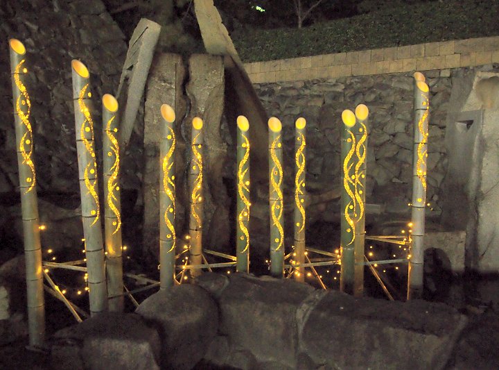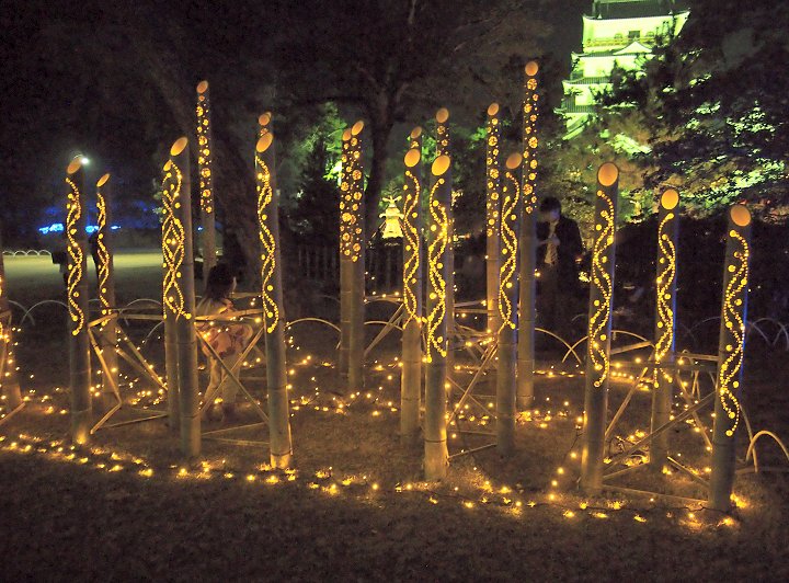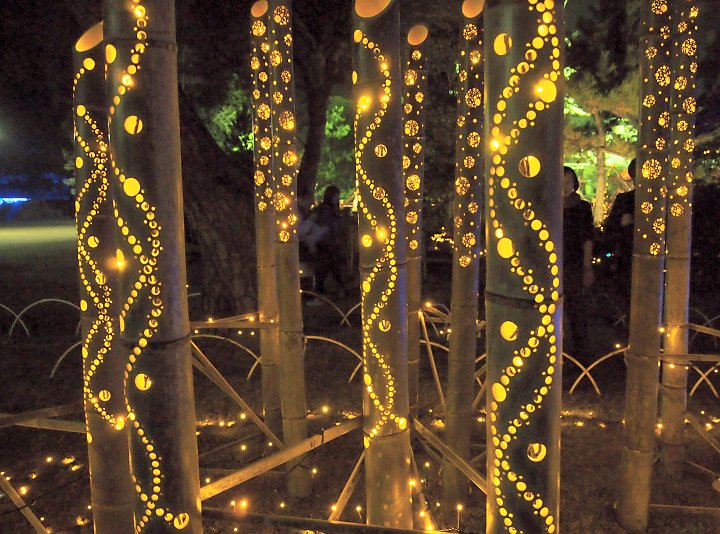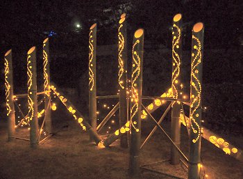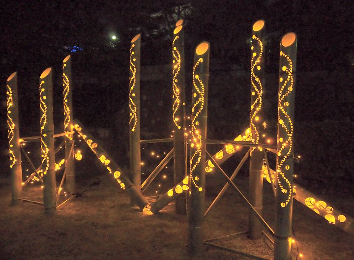 竹に穴を開けてあかり(ろうそくやLED)を灯す「竹あかり」…大変キレイです(^_^)v