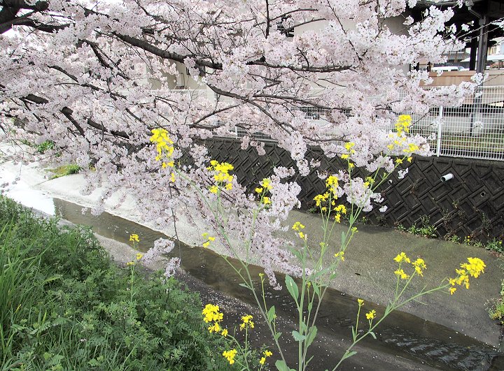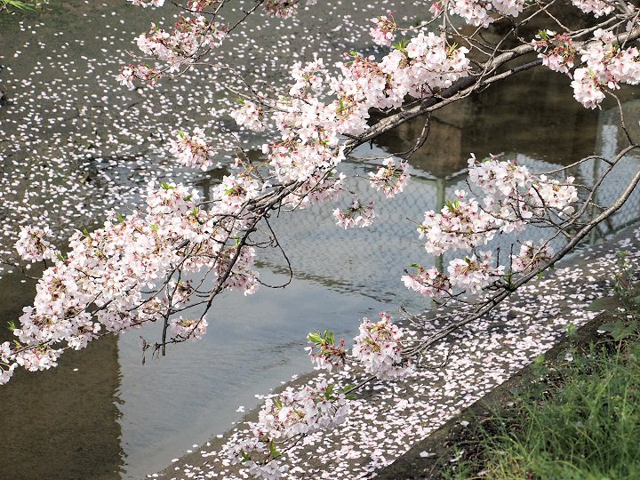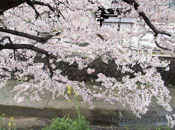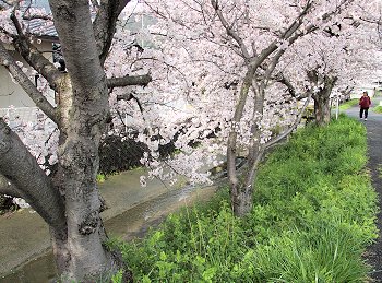 水呑川の川岸の景観が桜吹雪の様子を想像させてくれますけど、そんな様子をタイミング良く画像に納めます事が出来ましたらラッキーでしょうねぇ〜