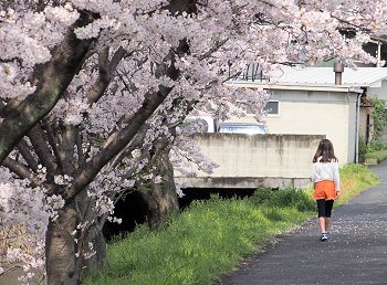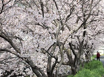 暫くどなたもおられません水呑川土手の桜並木を楽しんでおりましたけど、そろそろ退散を…と思っていましたら、ヤッとお一人来訪です(^.-)☆