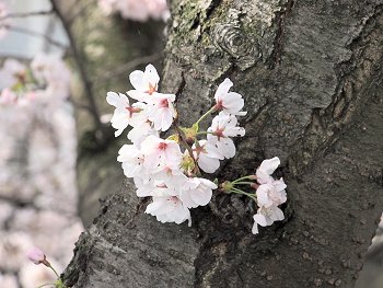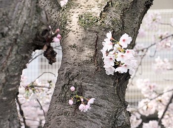 それに、サクラの樹木に途中からポツンと枝を出し開花していますのも、これもまたイィものであります(^.-)☆