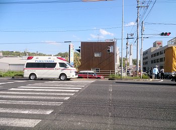 道幅としましてはJR東福山駅南口から国道2号線に向かいます道路の方が随分広いのですけど、この道を横断しておりますと、そんなに広く感じませんで横断道路の方が広くて優先道路…と感じられますから、飛び出して衝突…こんな状況なのかも分かりません。