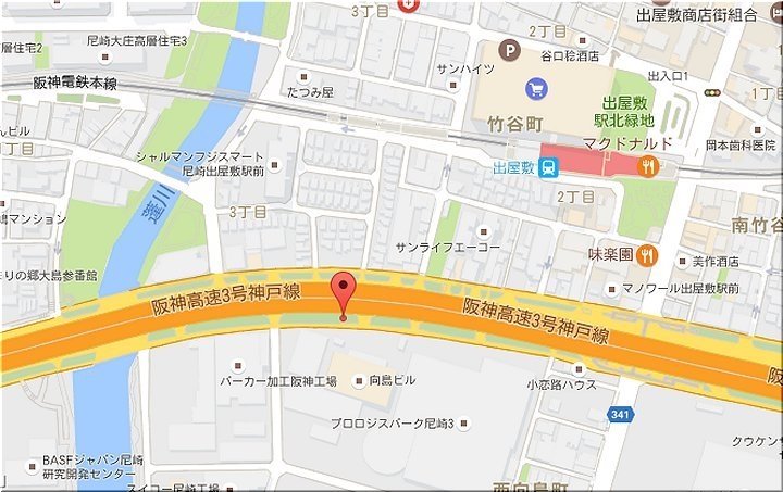 LINEの位置情報は、「兵庫県尼崎市南竹谷町3丁目」でありました。