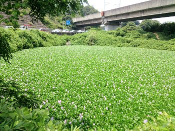 GONsanがよく覗きますホームページに『えいちゃん笠岡を走りまくる』(http://kasaoka.sub.jp/)がありまして、先日覗いてみましたら、海雲寺池(坂本池?)の「ホテイアオイ」の話題掲載が(^.-)☆
