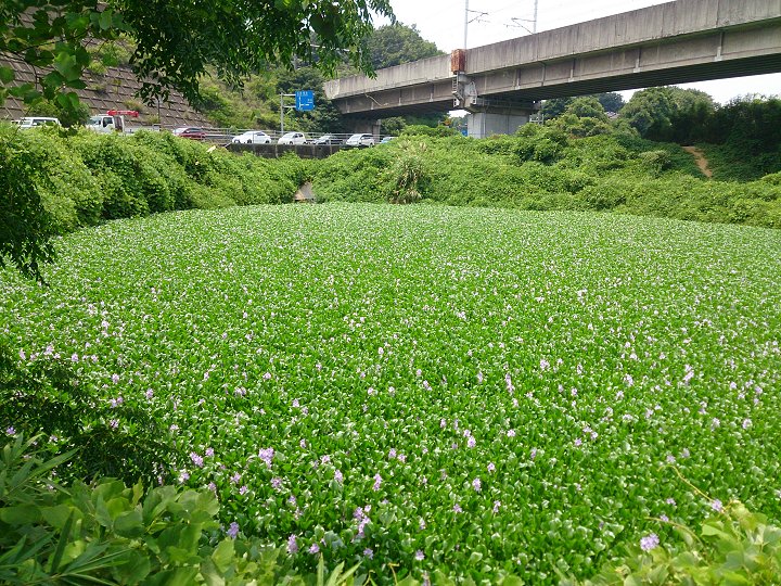 出掛けてみますと、池全面に張り詰めた「ホテイアオイ」、仲々見事でありました(^_^)v