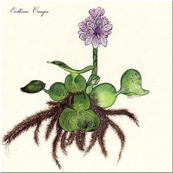 日本では、この浮き袋のような丸い形の葉柄を布袋(ほてい)の膨らんだ腹に見立てて「ホテイアオイ(布袋のような形をしているアオイ)」と呼ばれるようになった。