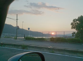 で、何気なく西北方向に眼を向けますと、沈みゆく夕日が大変キレイ(^.-)☆