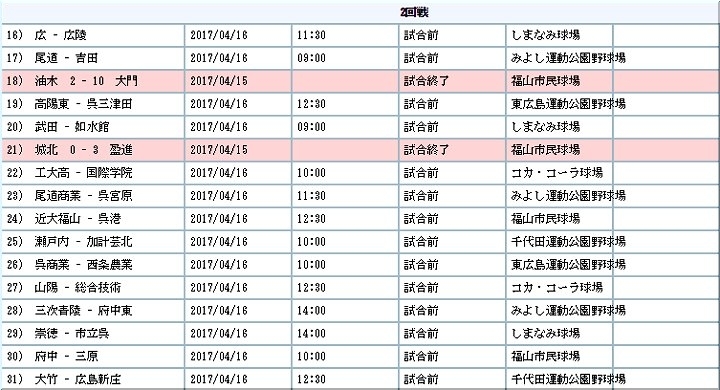 | 平成29年度 広島県高校野球春季大会 <1/4> |