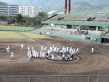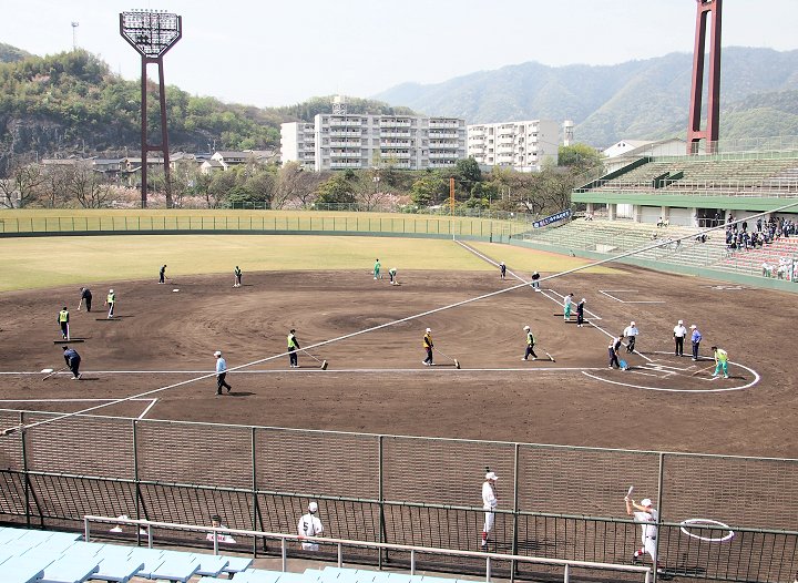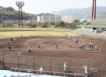 前日・4/15(土)に福山市民球場で「城北×盈進」の試合がありましたようですけど、「3×0」で盈進の勝利。観客も多かったものと思います。