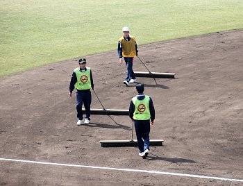 主審の「プレイボール」の宣告で投手が第一球を投じますけど、この時点が試合開始となりますねぇ〜