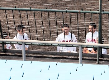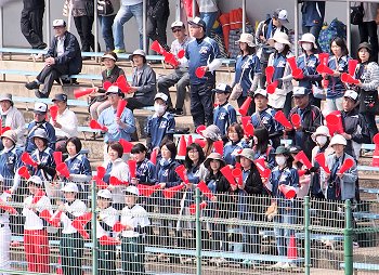 喫煙タイムを終えますと、また試合観戦に戻りますが、その前に三原高校の応援席をパチリです。