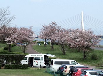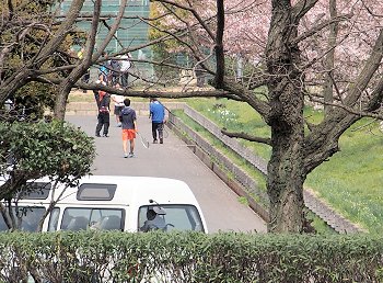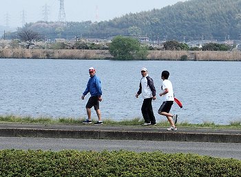 一服しながら芦田川方向に眼を向けますと、眼に入りましたのが3人の若者(^.-)☆