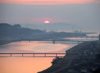 今回は、A.M.7:06を過ぎましても日の出はありませんで、ヤッとチラッと顔を覗かせましたのが、A.M.7:18でありました。