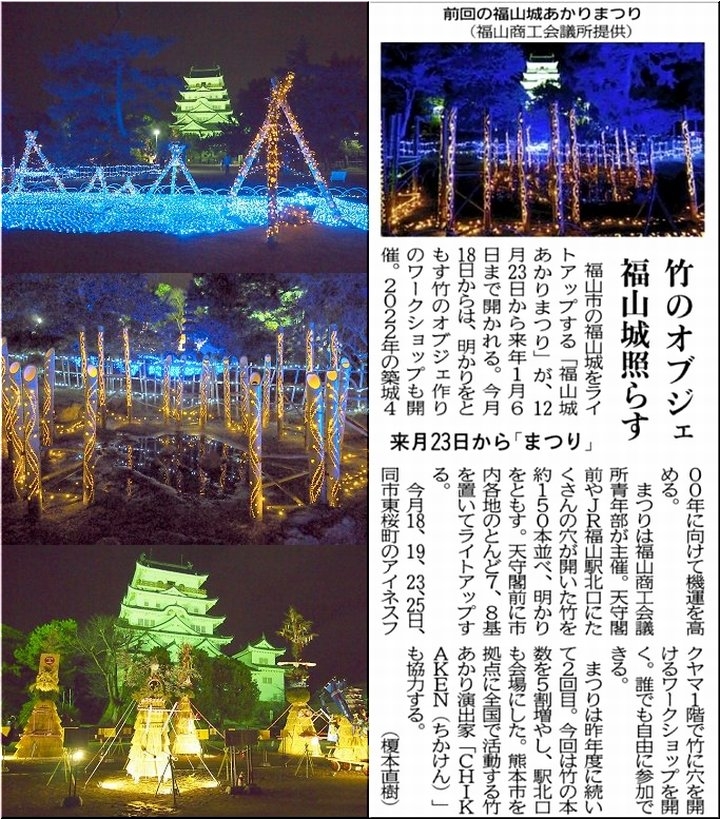 「福山城あかりまつり」は、12/23~1/6までの開催ですから、今年も是非出掛けて拝見しなくては!!