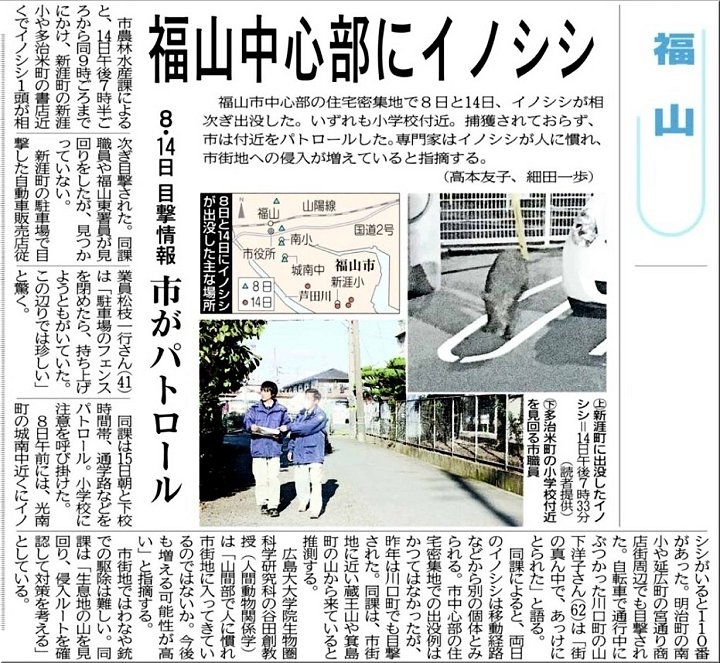 ふ~ん、福山市中心部にまたイノシシが(^-^;