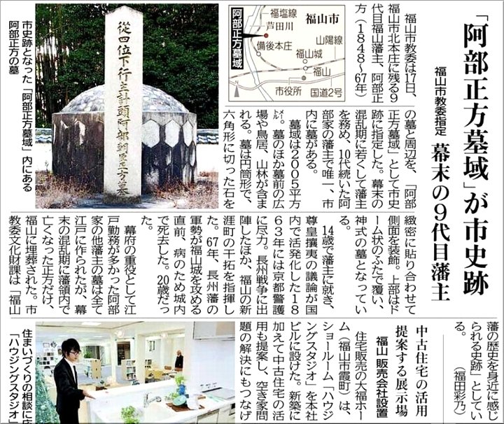 今朝の中国新聞朝刊で知りましたけど、ふ~ん、阿部正方墓域が福山市の史跡として指定されましたのですネ(^.-)☆
