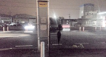 国道2号線に面しました社員用駐車場脇には、バス停(東福山駅口)が存在しまして、GONsanの退社時には大概二人ばかりバスを待っておられます。