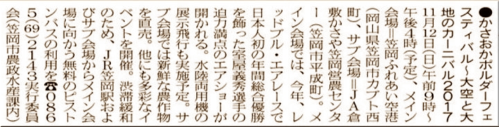 11/12(日)開催の「大空と大地のカーニバル2017」…楽しみですネ(^.-)☆