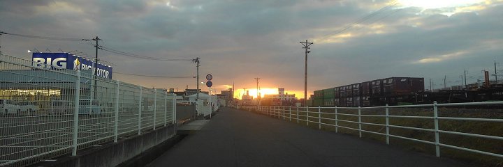 夕方近くのP.M.4:30頃でしたか…ビッグモーター福山店裏の貨物ヤード沿いの市道を走行しておりましたら、丁度、正面の西方に沈んで行きます夕日が実にキレイ(^_^)v