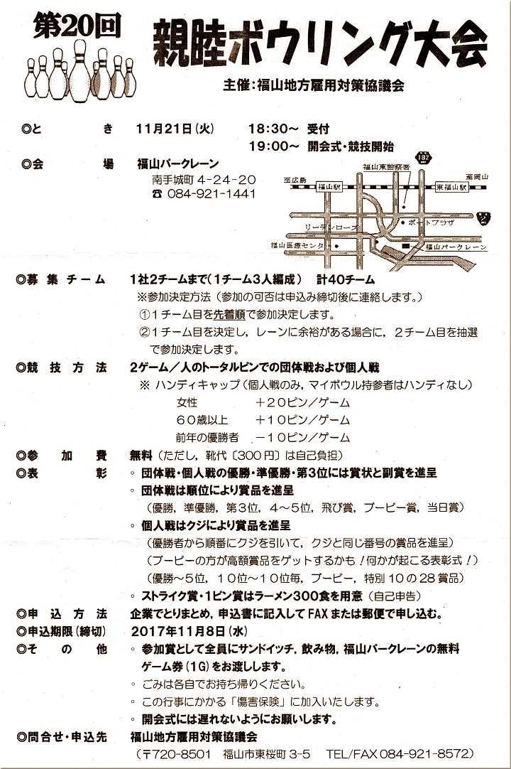 福山地方雇用対策協議会san主催の「第20回親睦ボウリング大会」