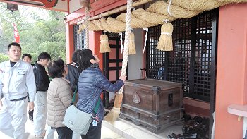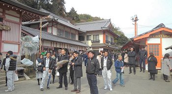 社員全員ですと大人数となりますので、みやびsanにA.M.9:00集合で、各部署の代表者の方28名での福山八幡宮参拝となりました。