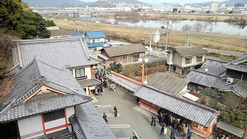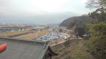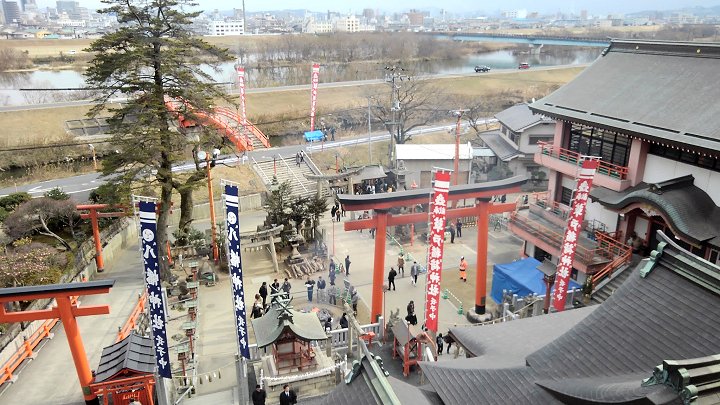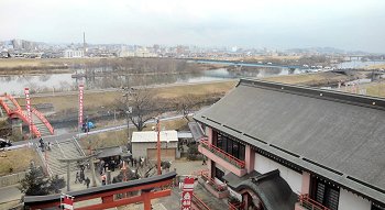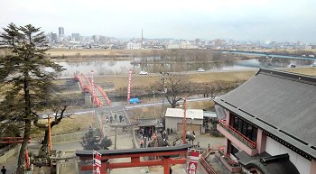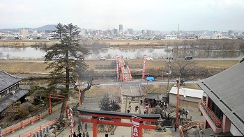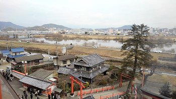 此処からの眺望と言いましても、神社境内・芦田川、そしてその後方に福山都心部が眼に入ります程度(^-^)