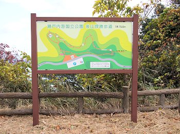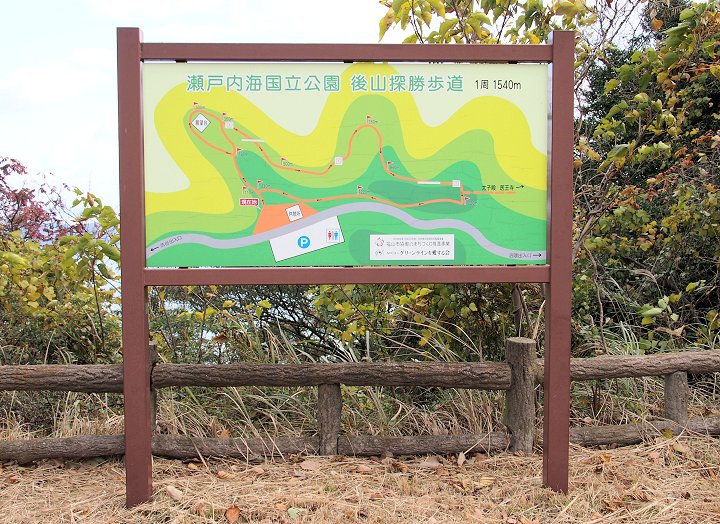 ここも木々に邪魔され眺望は今一。この展望台は平成23年3月の設置ですから、今から6年前ですネ。…と言う事は、設置されました当初から瀬戸内の眺望が目的ではなかったのでしょうねぇ〜この後山公園を訪れます方々の休憩所と言ったところでしょうか(^-^)