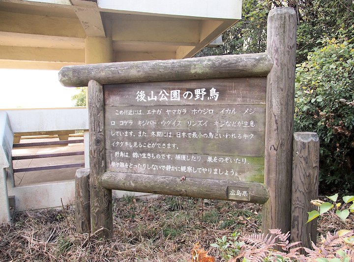 ここの付近には、エナガ、ヤマガラ、ホウジロ、メジロ、ウグイス、キジなどが生息していて、野鳥を観察できる場所になっています。