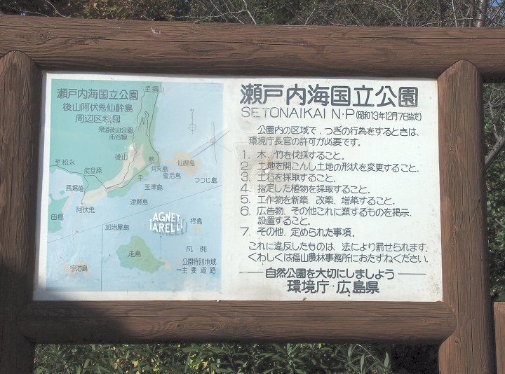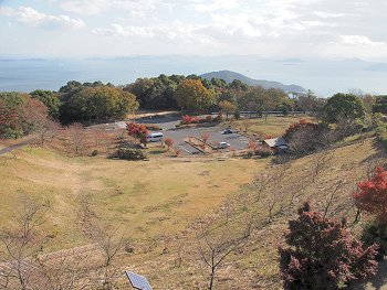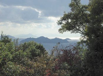 展望台周辺の木々は随分成長し、素晴らしい眺望はこれらの木々に覆われて、かろうじて走島が中央部に見渡せるのみ(^-^;